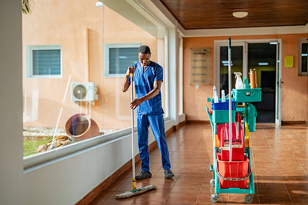 Reliable cleaning staff providing daily sweeping and mopping services to maintain cleanliness and hygiene in homes and offices.